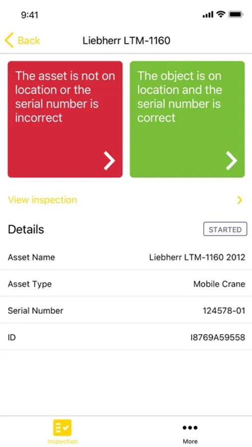 With the Inspection app you can do inspections on equipment for MYCRANE.