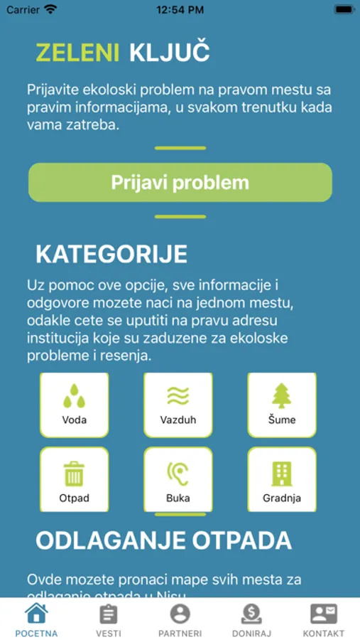 Aplikacija Zeleni ključ vam na jednom mestu nudi prvu pomoć za sve vrste ekoloskih problema i pruža dodatne informacije na koji način svaki pojedinac može učestvovati u očuvanju životne sredine.