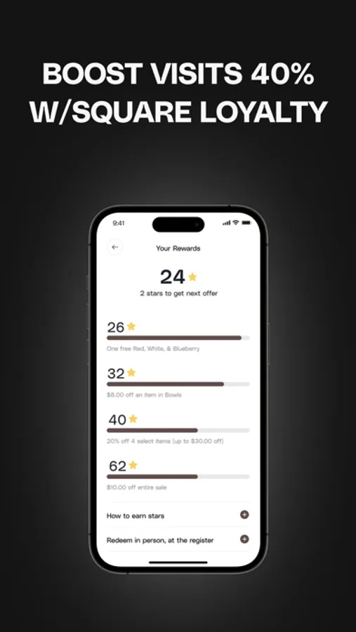 The app integrates seamlessly with Square Loyalty to reward repeat customers and encourage future visits. The app can also redeem online and physical Square Gift Cards. Plus, sell eGift cards for your business right in the app.