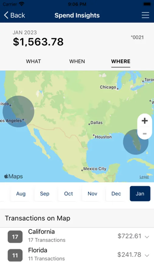 Get rich data about your card purchases, with Spend Insights. Sort spend insights by merchant category, location, and monthly trends.