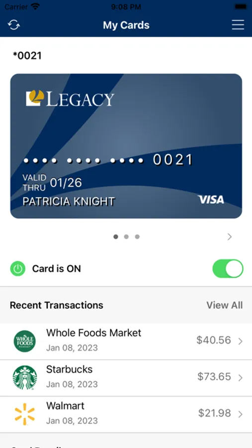 Legacy Card Control App gives you control of your Legacy Visa® debit cards.