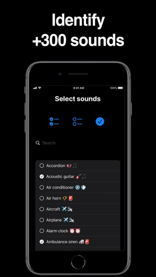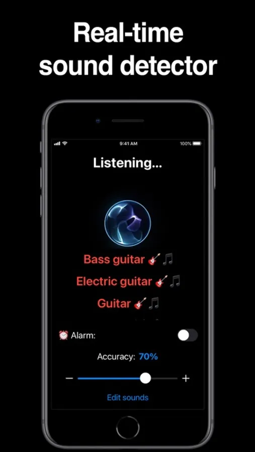 Welcome to WorldSounds, this app works with Artificial Intelligence to identify over 300 different types of sounds. When your iPhone detects any sounds selected it will activate a haptic alert, sound alert and push notifications in background. This includes a variety of noises, ranging from human sounds, musical instruments, animals, and various items.