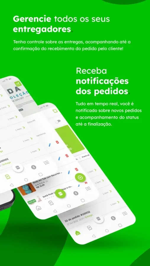 Acompanhe todos os pedidos, cadastre e gerencie os seus produtos e entregadores, além de ter a gestão de seus ganhos, tudo isso pelo app.