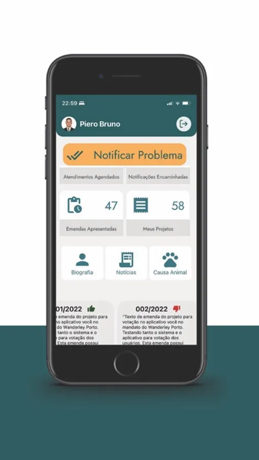 Você pode saber tudo o que o vereador está fazendo na função legislativa e interagir. Conhecer os projetos de lei apresentados e as emendas em andamento, além de emitir o seu voto ou opinião sobre determinado assunto, o que pode influenciar o parecer do parlamentar.