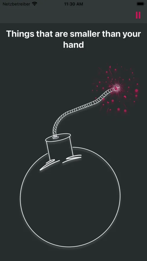As soon as you start your first “Quick Game” a bomb appears and your time starts ticking. On the screen a question or task is written. The first player answers the question and passes the phone, with each new player answering something that has not yet been named.