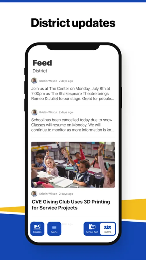 In the Live Feed is where you'll find updates from the administration about what's going on in the district right now. Whether that's celebrating a student's success, or reminding you about an upcoming deadline.