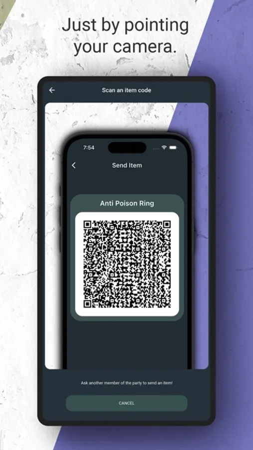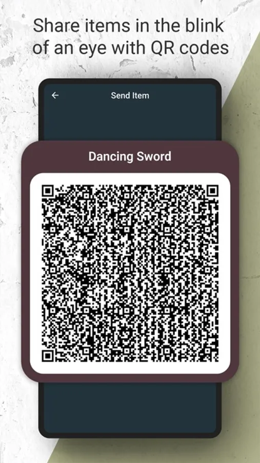 Use one of the many built in SRD item templates to get started making an item, or just make your own from scratch! Once you're happy with your masterpiece, quickly and easily use a simple generated QR code to share it with other players instantly, just by pointing their camera.