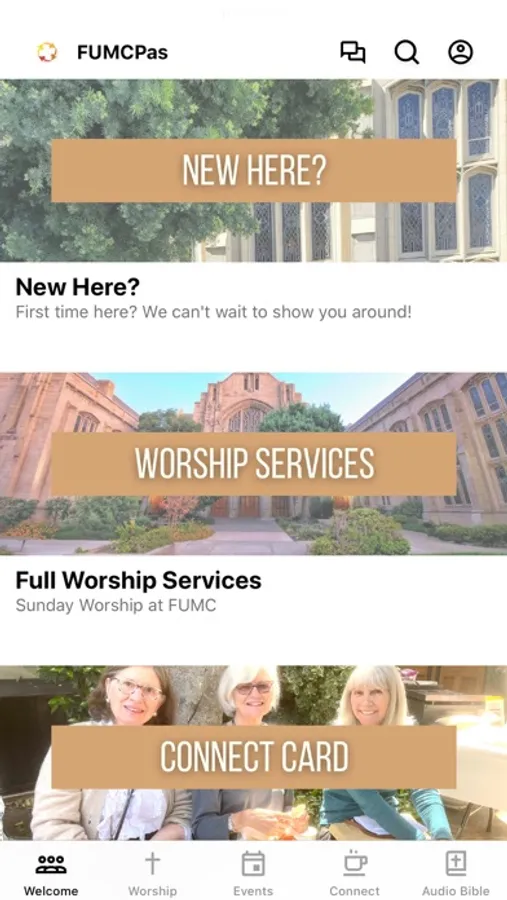 Welcome to the FUMC Pasadena App! You can now experience the warmth, fellowship, and joy of FUMC on your phone or tablet. Watch services, participate in our ministries, and engage with the community digitally.