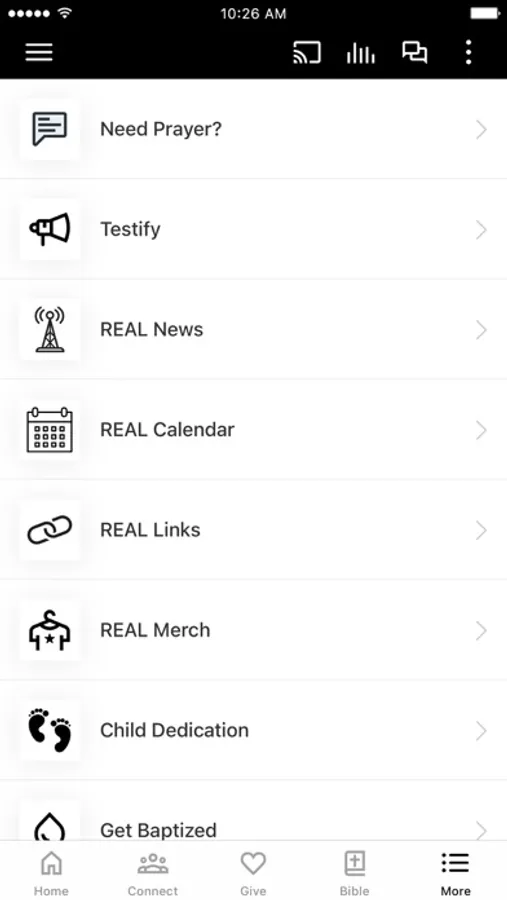 The REAL Church App will help you stay connected and engaged with everything REAL. You can watch or listen to past messages, or download messages for offline listening; tune into a live stream; see upcoming events; stay up to date with push notifications; read the Bible in a year; make donations with safe and secure giving, and so much more.