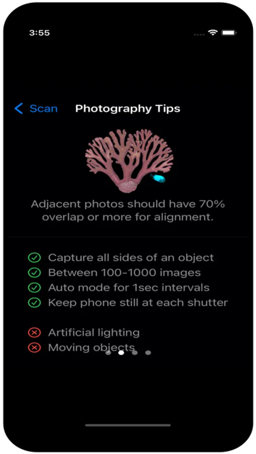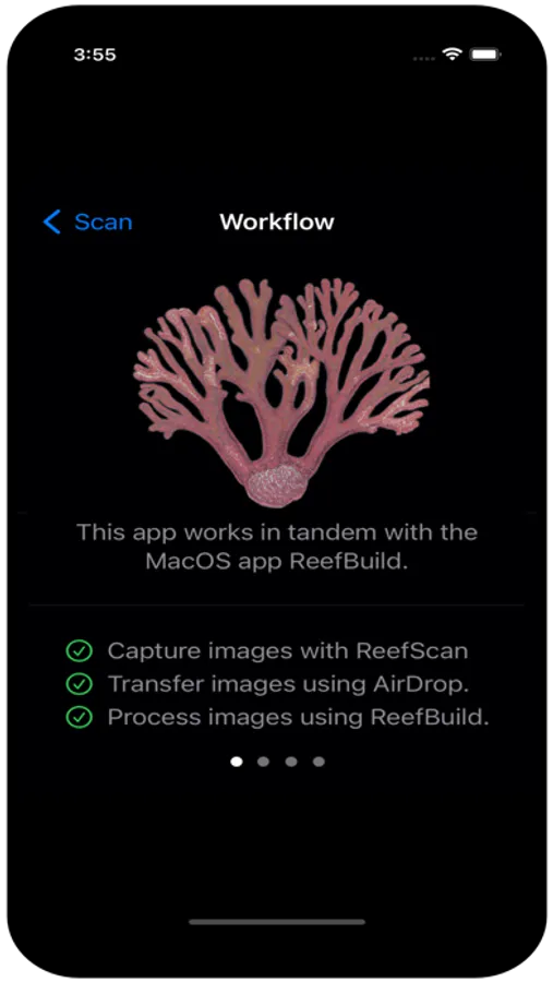 ReefScan for iOS collects images and depth map data for underwater features such as reefs, coral, and wrecks. This data can then be used with the MacOS companion app ReefBuild to create a 3-D model. Very fast and accurate scanning. Also works above water and can be used with other photogrammetry applications besides ReefBuild.