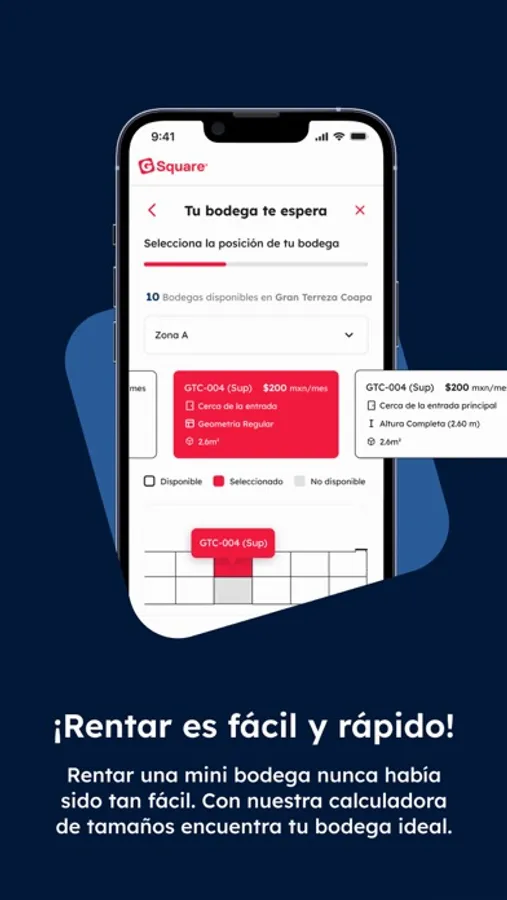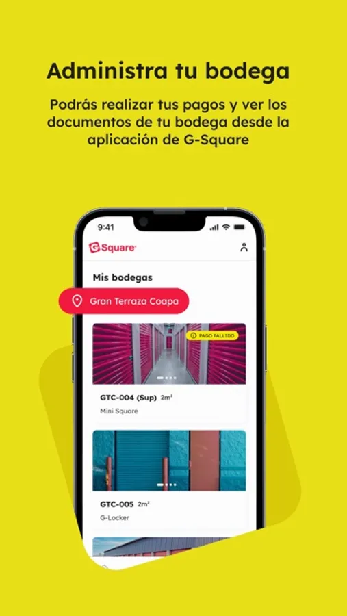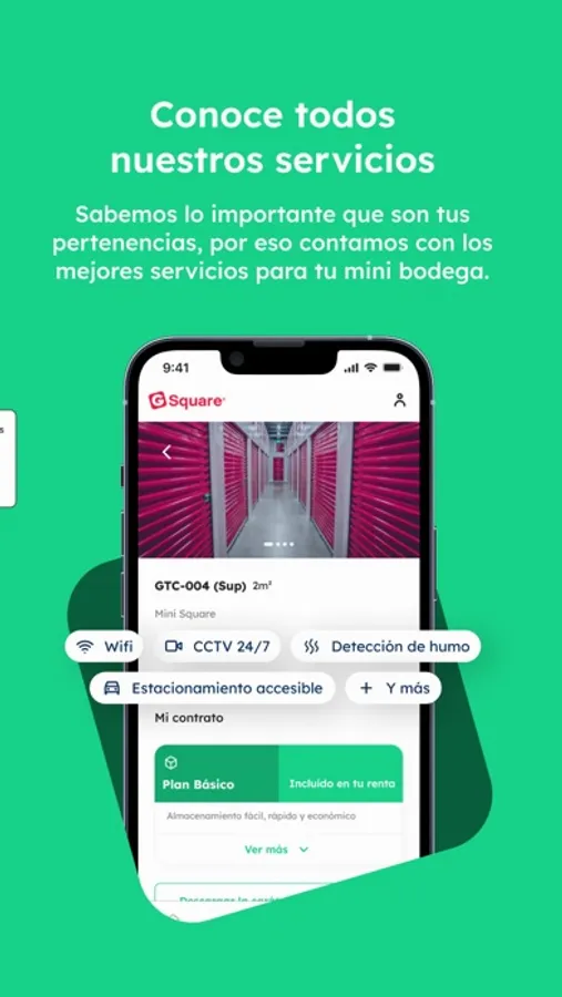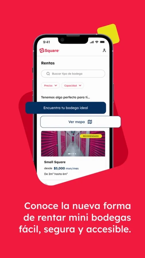 "Rentar una bodega es más fácil y accesible con G-Square. Nuestra aplicación te permite calcular, rentar y administrar tu mini bodega a donde vayas.