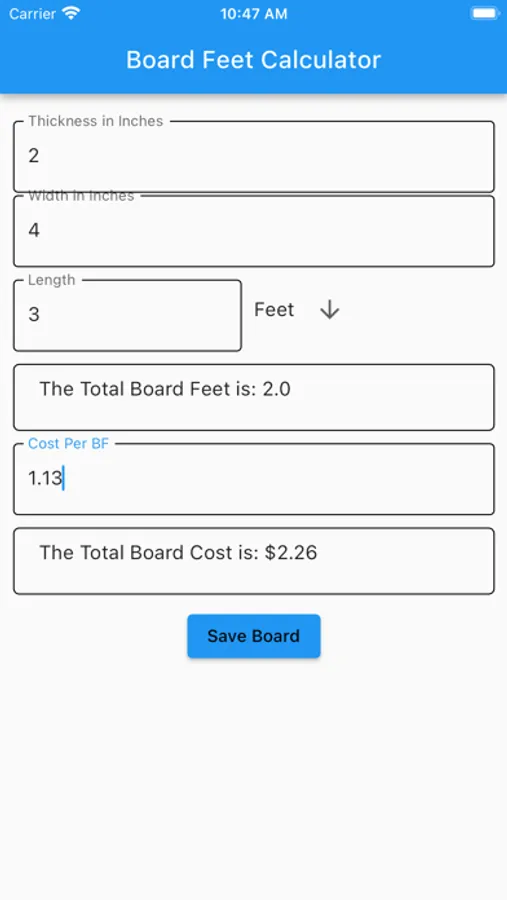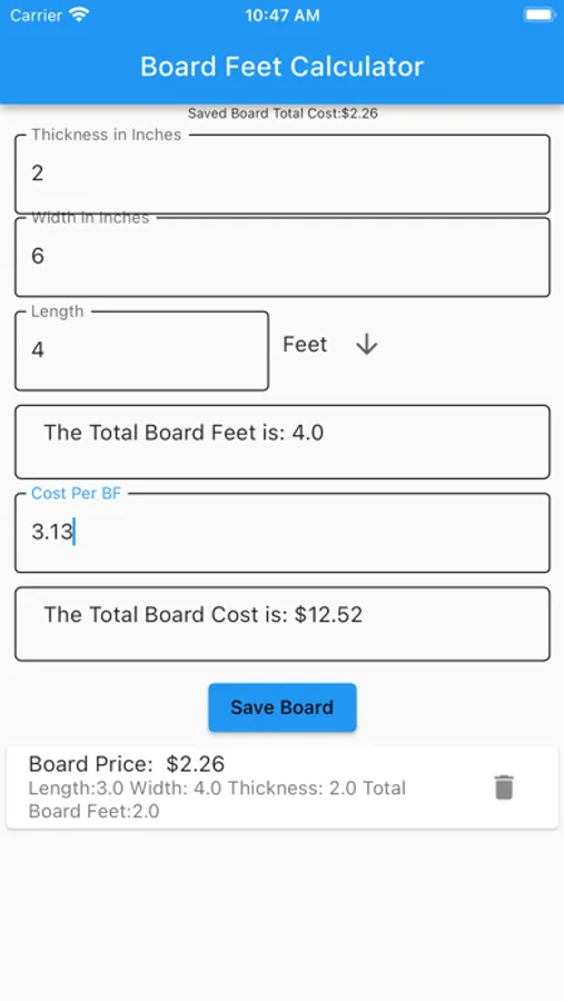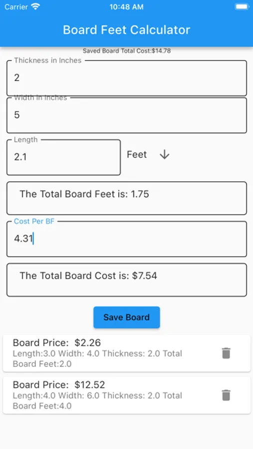 The Board Feet Calculator Screenshots