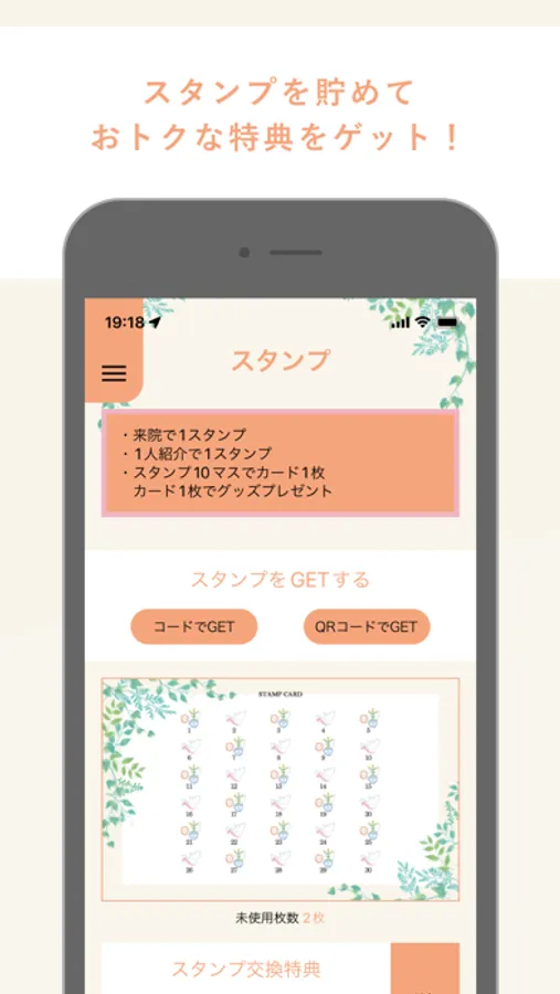 例えばスタンプカードを1枚溜めると景品をプレゼントいたします。