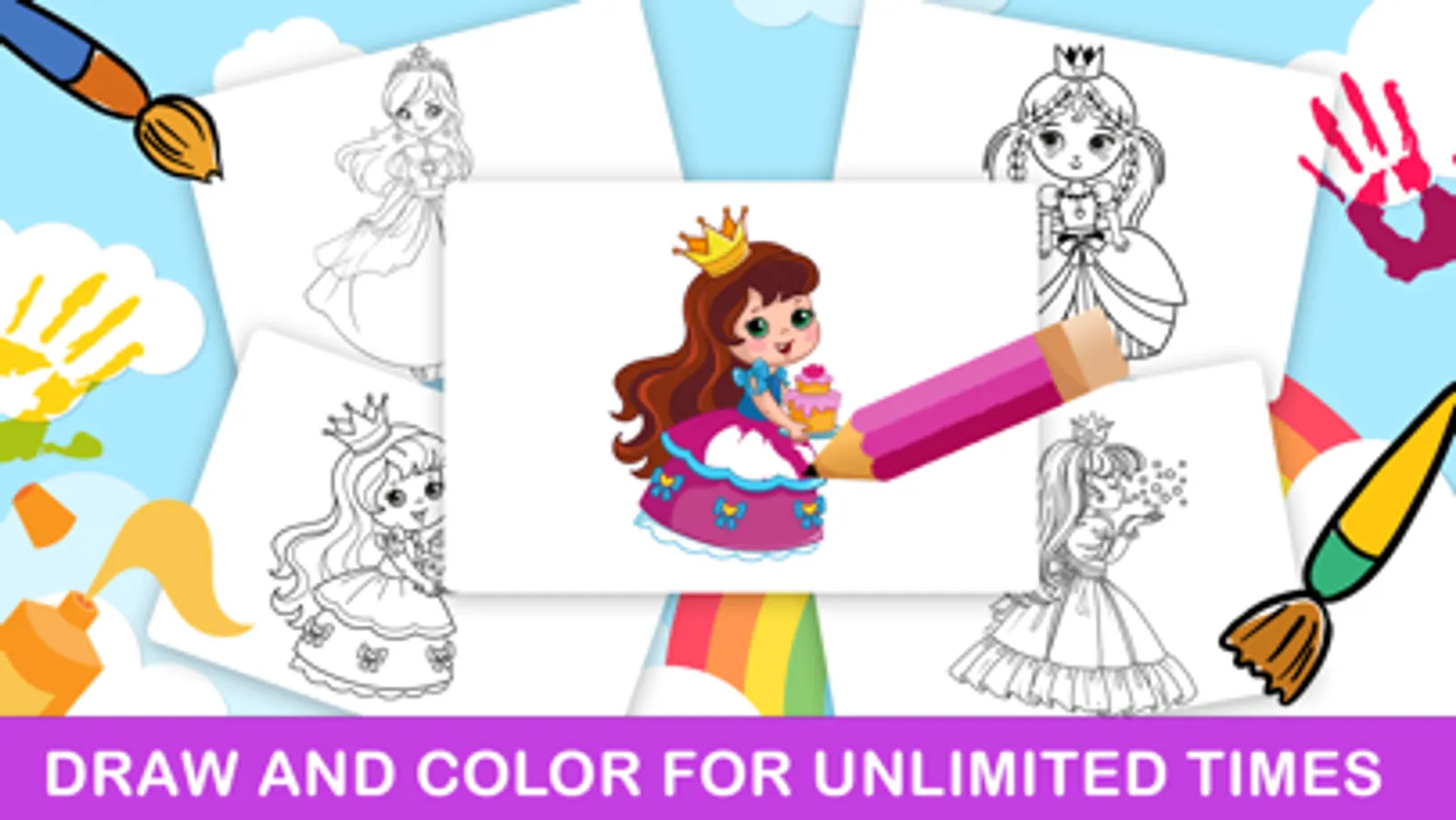 The Rainbow Unicorn Coloring Book is filled with coloring pages of unicorns, princesses and cupcakes that will help you to learn draw them and Recolor them unlimited times .