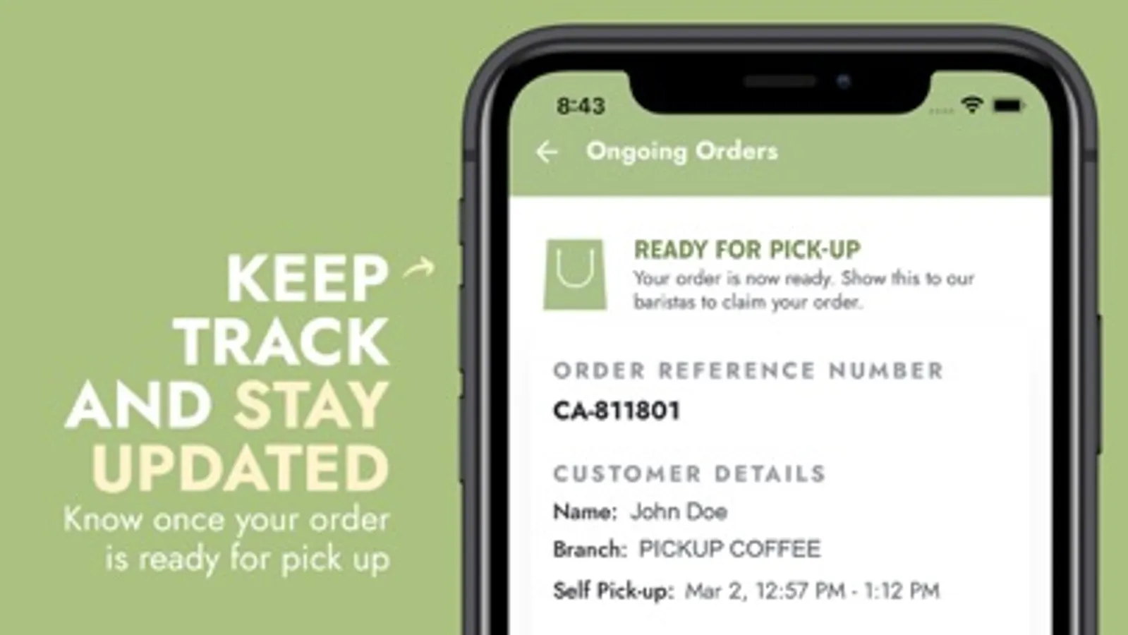 - Turn-on your PICKUP COFFEE notifications to know once your order is ready for pick-up