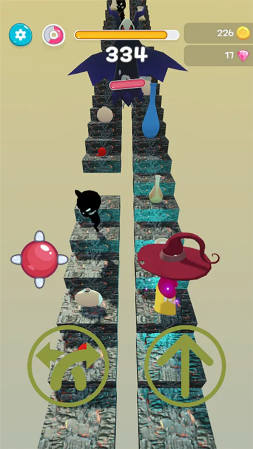Wind Cat is a simple game that goes up stairs quickly to avoid various obstacles.