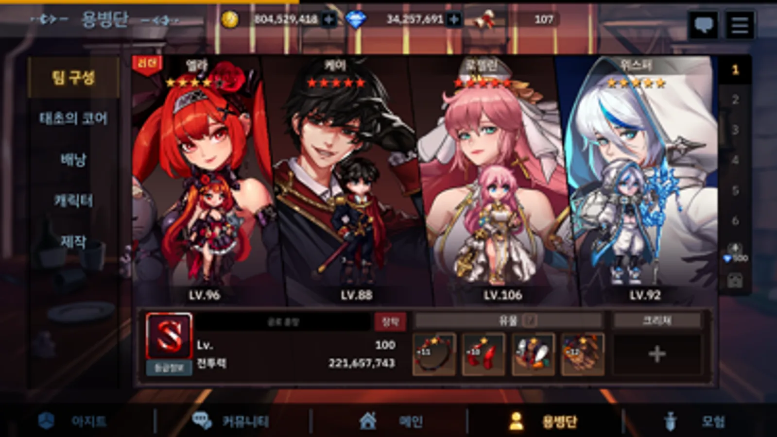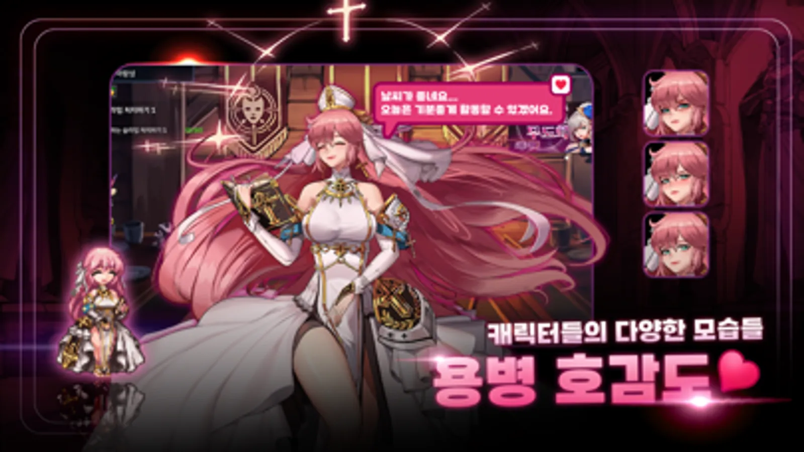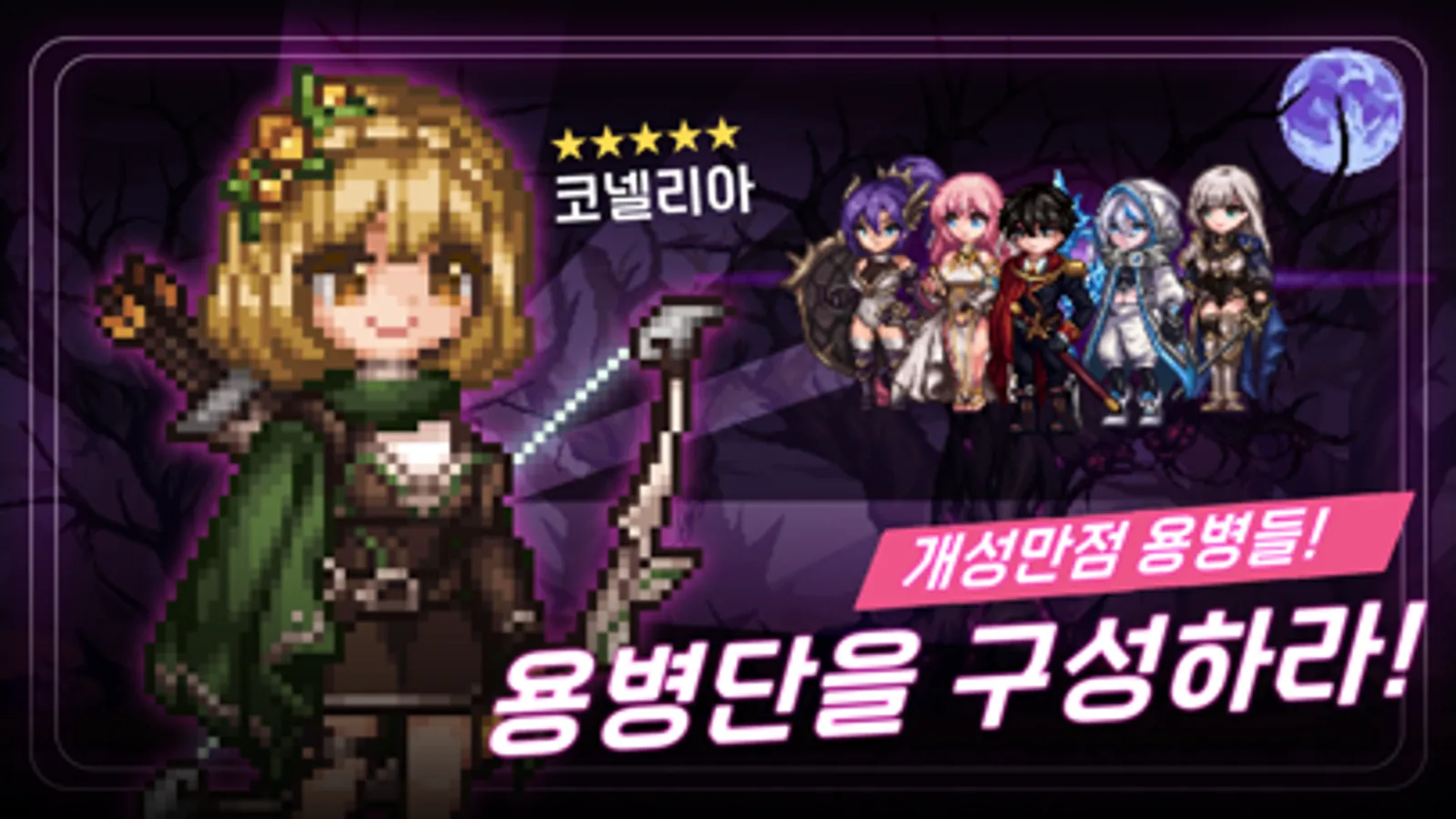 다양한 특징의 캐릭터들 중 단장님이 원하시는 캐릭터들로 용병단을 구성해 보세요.