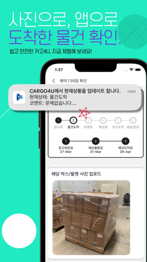 - take a photo of the boxes/pallets and let the customers know the information with push-notification