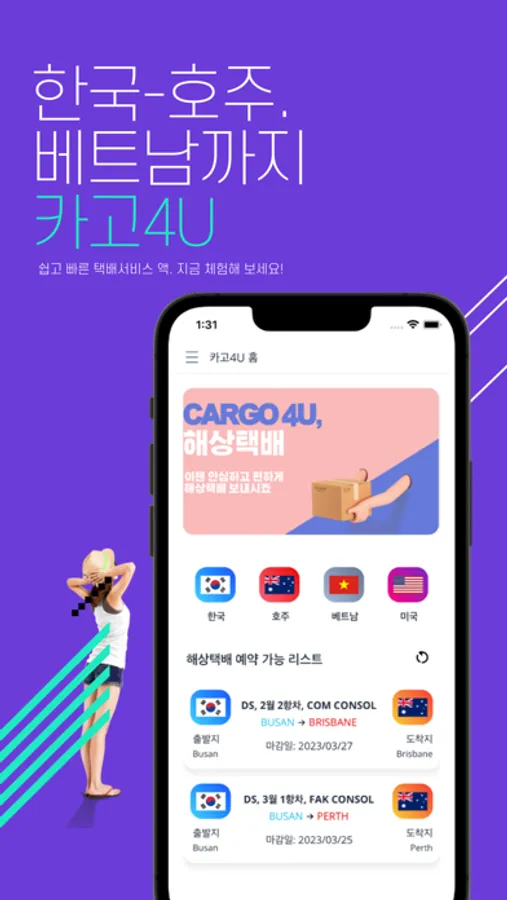 - check sizes of the boxes/pallets and let the customers know the information with push-notification