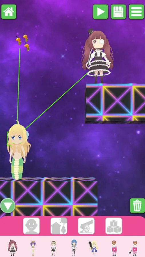 In this puzzle game, the game is over when an obstacle hits ""jashinchan"" or she is attacked by an enemy!