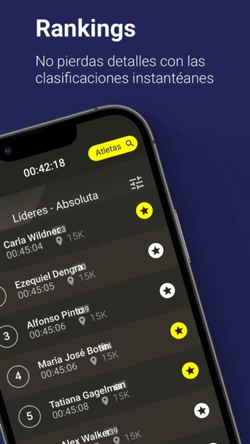 Además, podrás ver de forma rápida cualquier clasificación al instante: por categorías, los primeros corredores por tramo y el último punto alcanzado de los participantes a los que sigas.