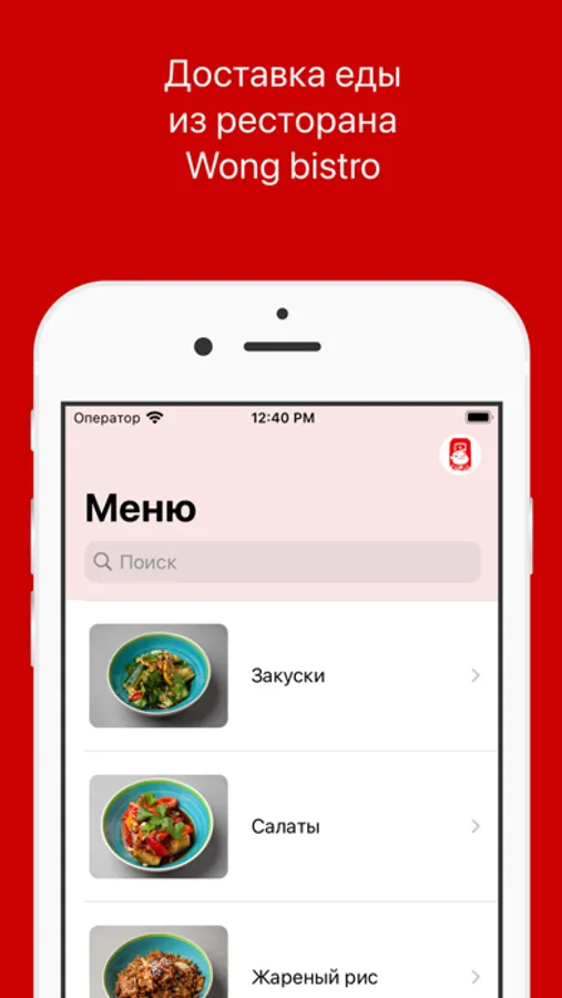 Как сделать заказ в приложении “Wong bistro”: выберите понравившиеся позиции из меню, добавьте их в корзину и перейдите на экран оформления заказа (по нажатию на иконку корзины).