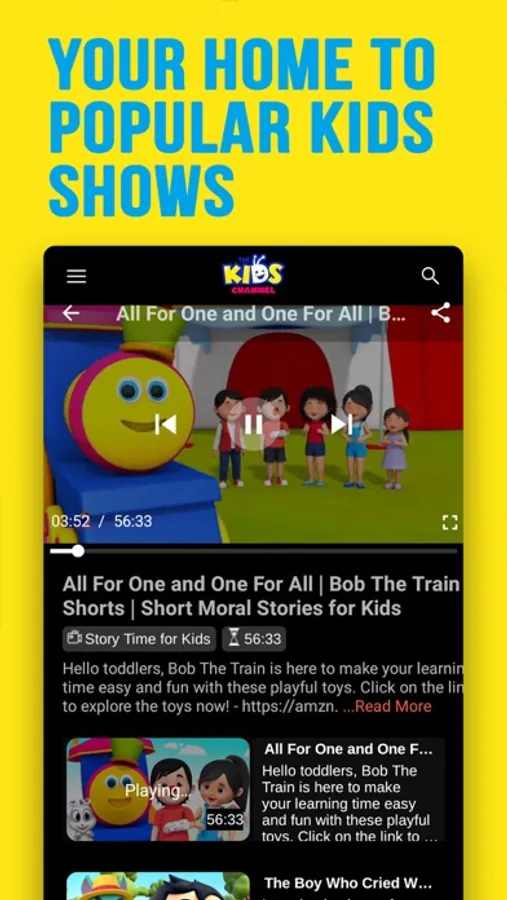 The Kids Channel is also home to Popular Kids Shows like Bob the Train, Junior Squad, Little Eddie, Baby Bao Panda and Bottle Squad.
