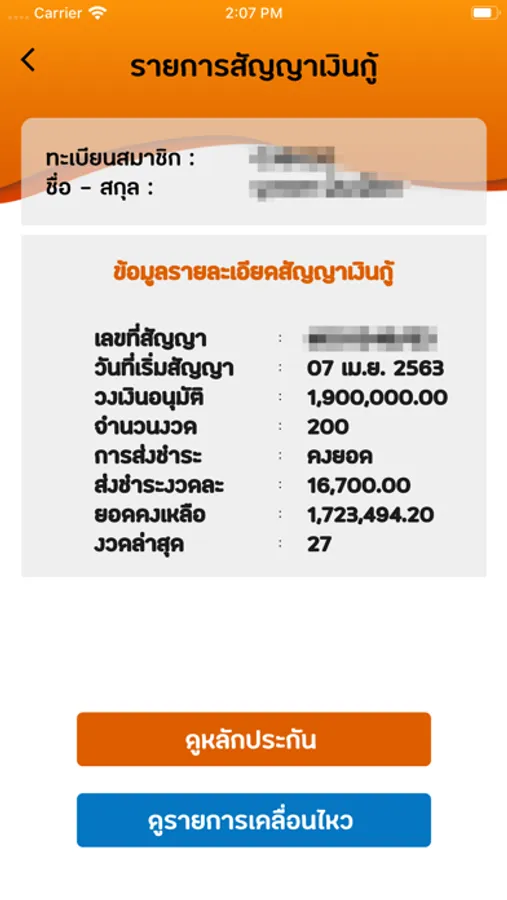 - ยอดคงเหลือสินเชื่อ และรายการเคลื่อนไหวของบัญชี