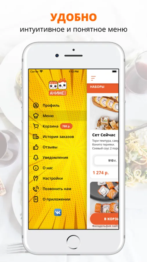 Приложение Аниме — это удобный способ заказа еды домой или в офис. Всегда в нашем меню — вкусные роллы, пицца, салаты.