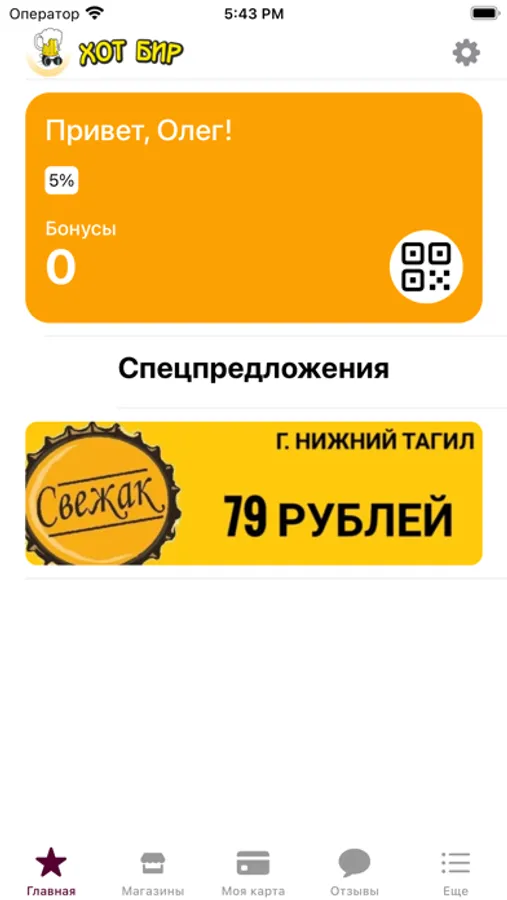 Электронная бонусная карта всегда с Вами: Регистрируйтесь в приложении и получайте бонусные баллы за покупки в фирменных магазинах ХОТ БИР