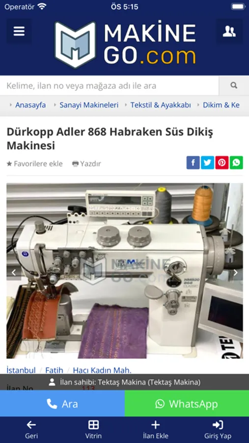 Beğendiğiniz makine ilanlarını sosyal ağlarda ki arkadaşlarınızla paylaşabilirsiniz.