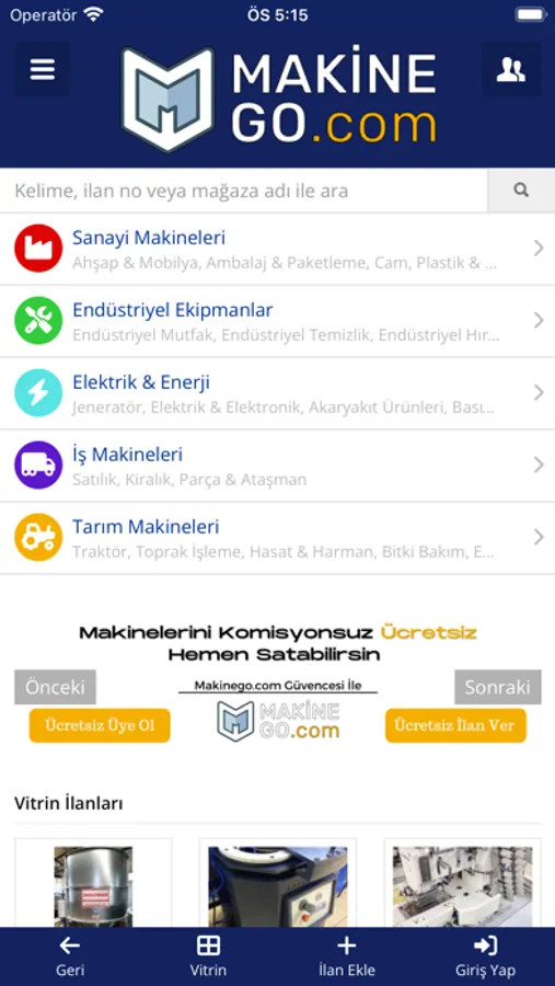 Makina ve Ekipmanlarla ilgili yüzlerce kategoriye ait binlerce ilan bu uygulamada.