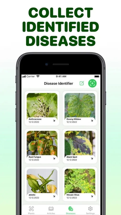 Photos – access to upload selected photos of plants or plant diseases for identification.