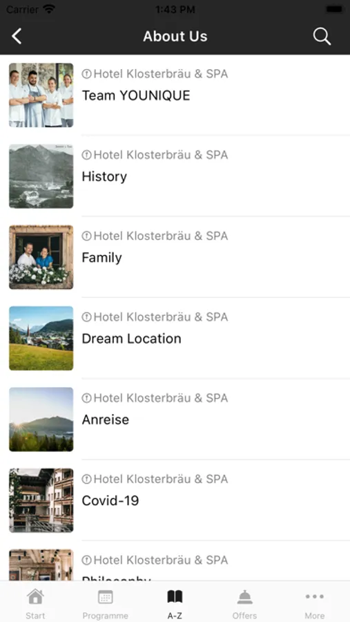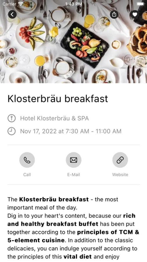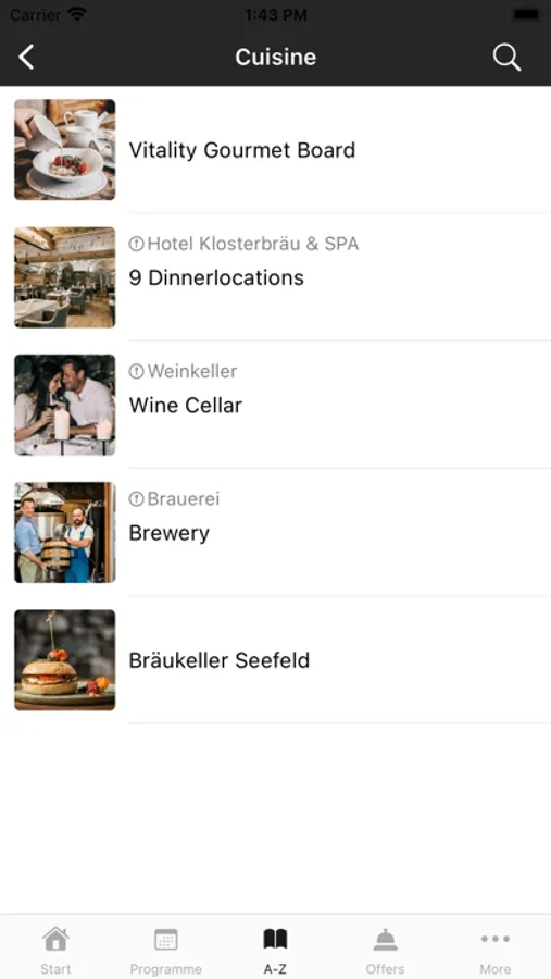 Important standard information about the Klosterbräu, such as location and directions, as well as opening hours of the restaurant and reception, are prepared for you in the app. To help you find your way around, you can use the app to quickly find all the places and facilities in the hotel and its surroundings.