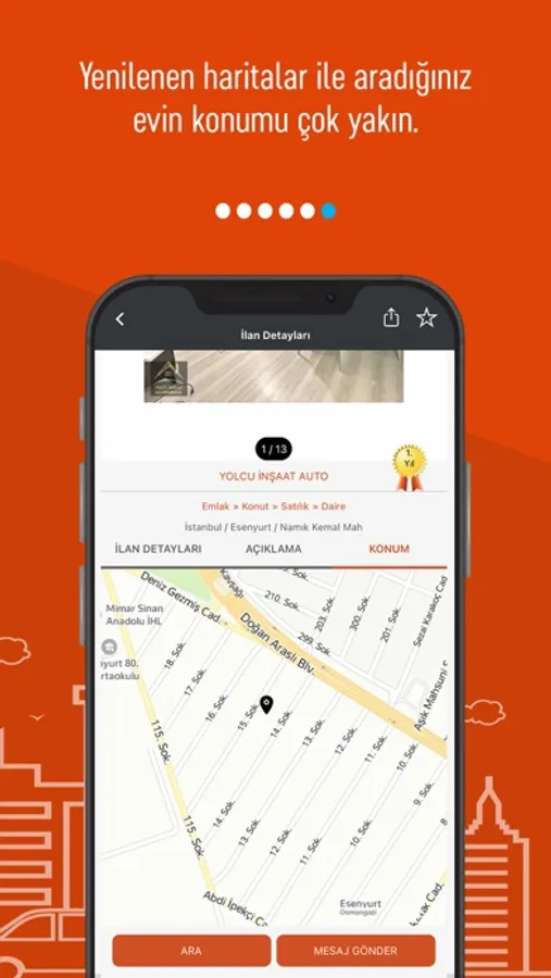 - Satılık, kiralık ilanları görüntüleyebilir, ilan sahibini tek tıkla arayabilir,