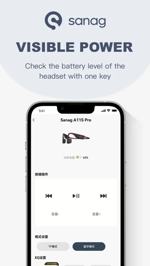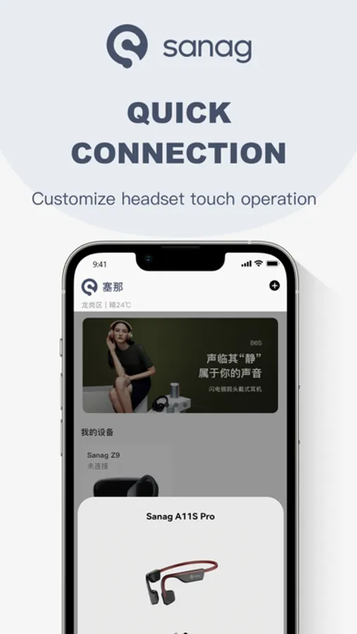 Sanag APP is a Sanag smart product management platform, which can be easily and conveniently connected to the hardware through the mobile phone, enjoy the fun of human-computer interaction, and meet the user's headset firmware upgrade needs. When the device is connected, the Sanag APP can quickly check the power, pairing, etc. Function.