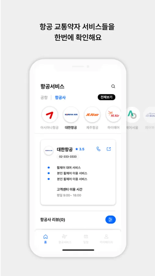 원하는 공항과 항공사를 검색해 교통약자 서비스에 관한 정보를 빠르게 확인하세요.