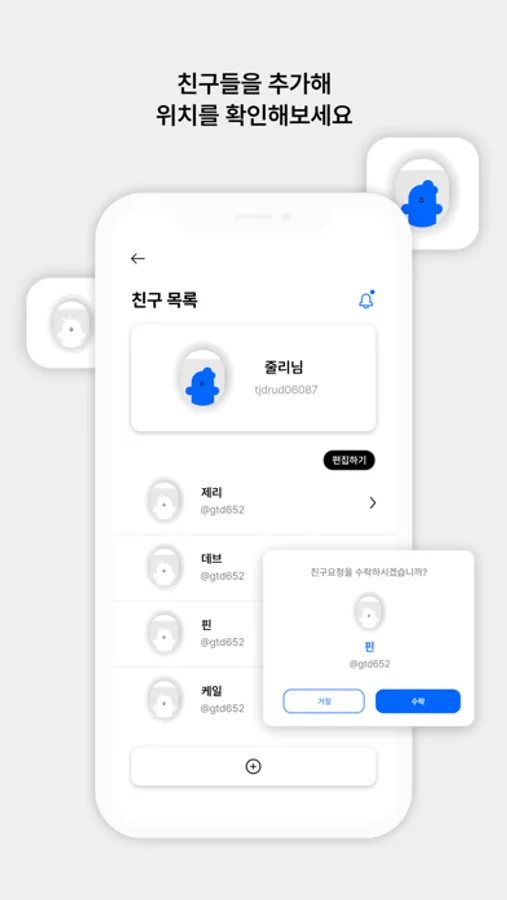 원하는 친구를 등록하고 실시간으로 위치를 확인해보세요.