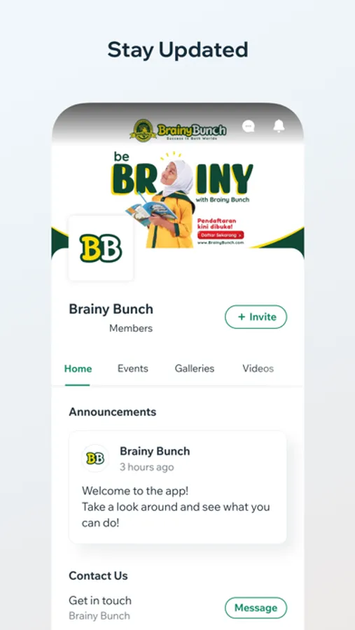 Brainy Bunch parents can maximise their children learning experience by communicating with the school, other parents and gets all the support resources to enhance our children learning experience. Parents can also purchase uniforms and and supporting materials from the app.