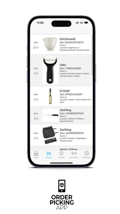 Connecting the Orderpicking App to your webshop (Woocommerce and Shopify) is simple and quick. Within an hour, you'll be online with the Orderpicking App, able to pick and pack your orders three times faster and with greater accuracy.