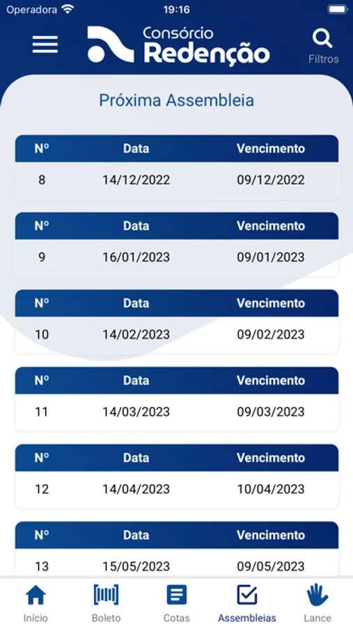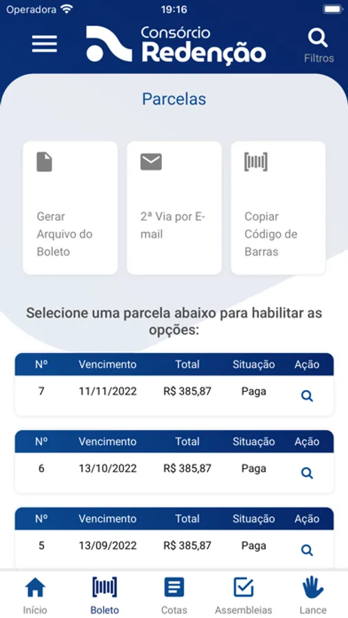 Com ele você pode ofertar lances, emitir segunda via de boletos, verificar o resultado das assembleias e realizar o acompanhamento da situação de sua cota até a contemplação!