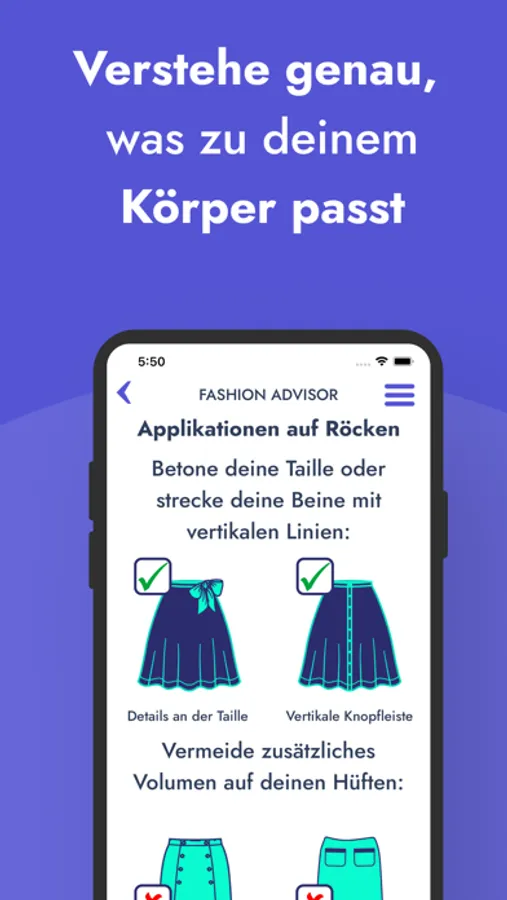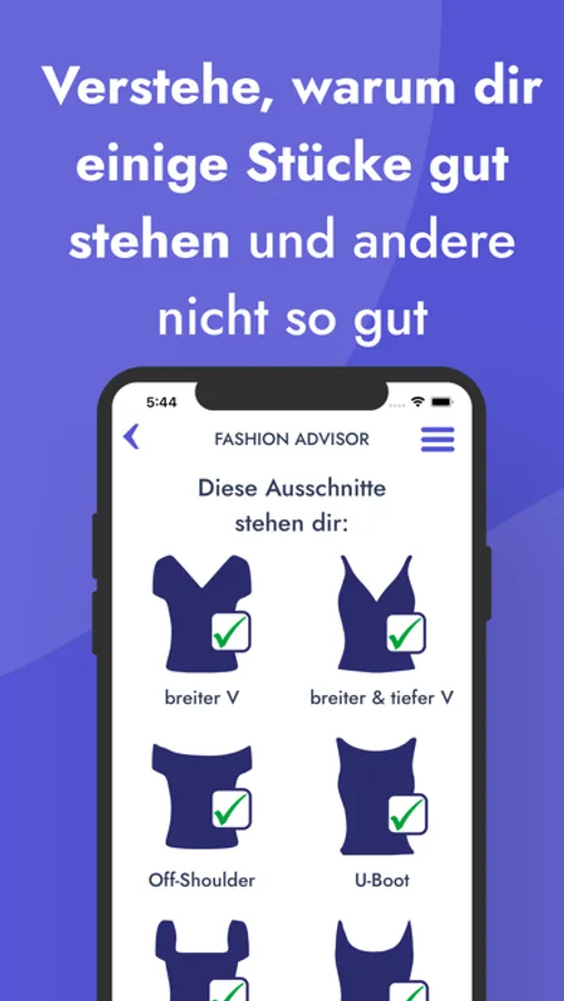 2. Deine Styling Tipps: Unser Algorithmus berechnet dir, welche Schnitte und Farben dir optimal stehen.
