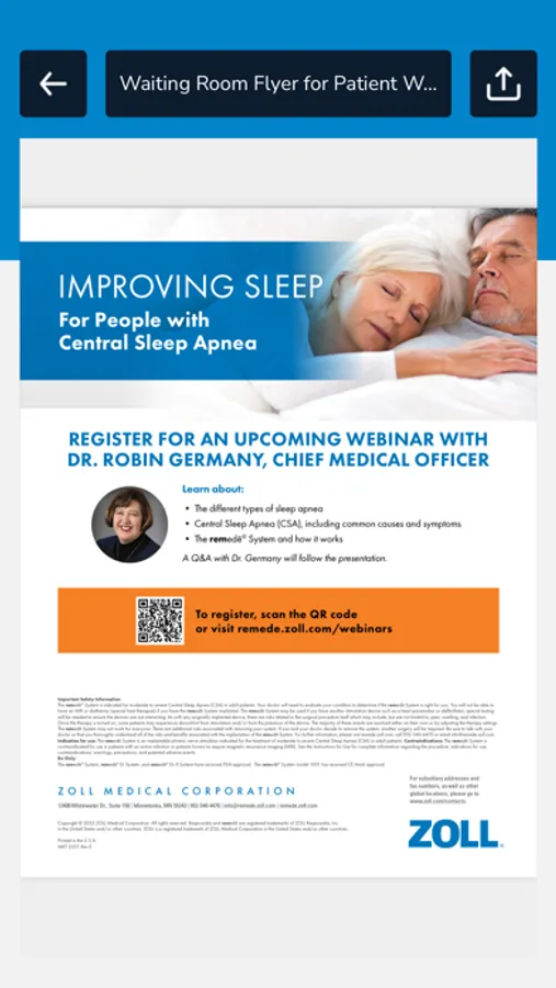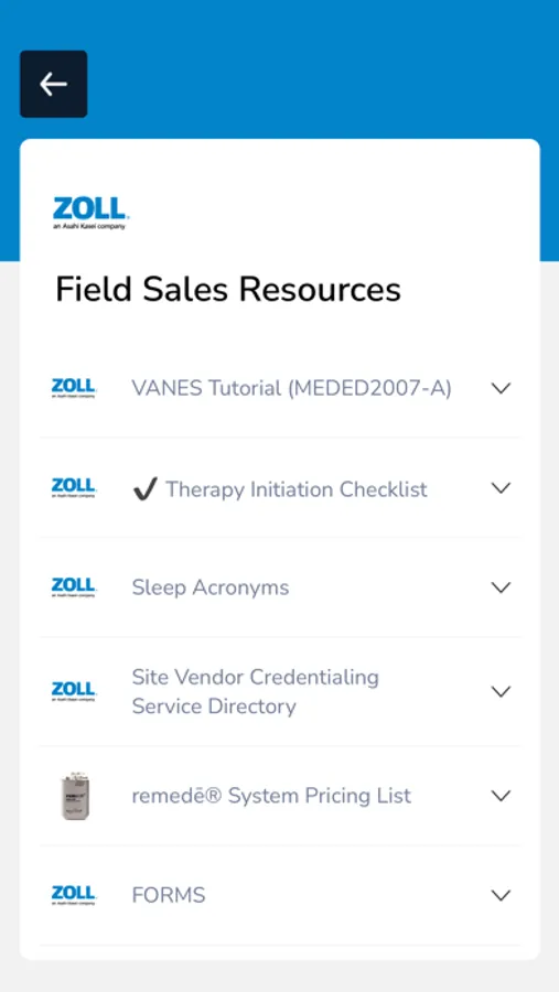 Welcome to the ZOLL Respicardia Field Sales app! Here you will find information about upcoming Sales Training events, Physician Training Education calendars, important forms, documents and more!