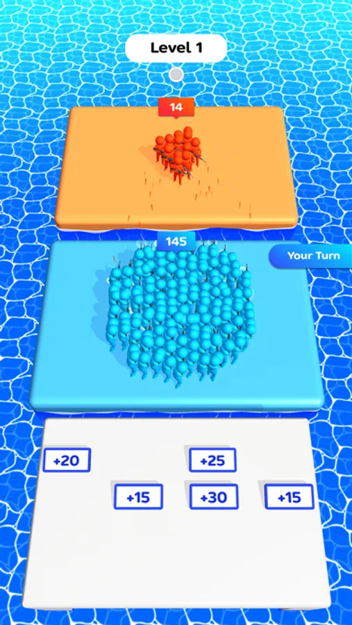 Build your Blue Army up using your cards and destroy your Orange Enemy to win!