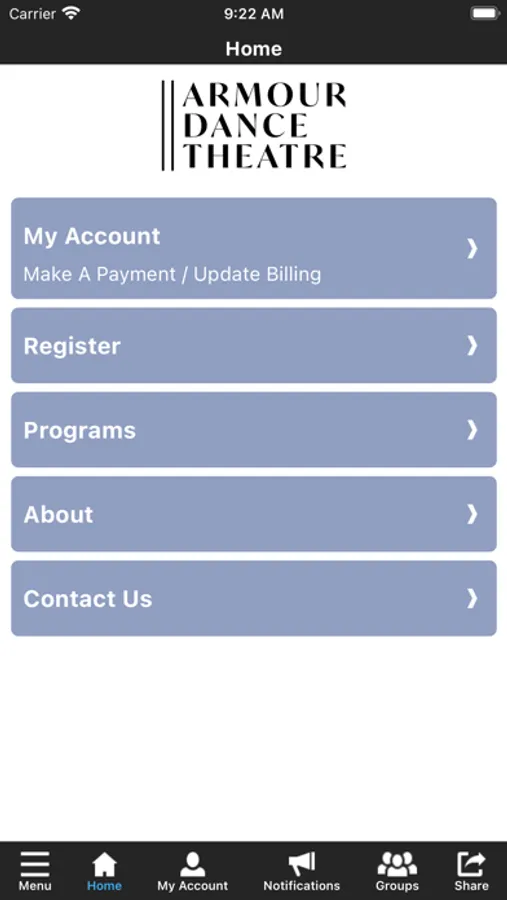The Armour Dance Theatre app allows you to manage your account with ease, register for classes, parties, and special events. You'll also receive important notifications about class changes, closings, registration openings, special announcements, and upcoming events.