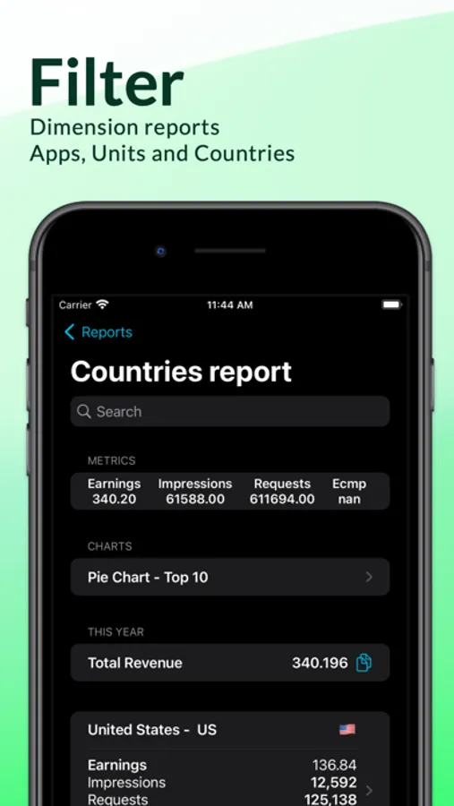 - Filter using dimensions reports, Select time period and the dimension (Ad Unit, Countries and App).