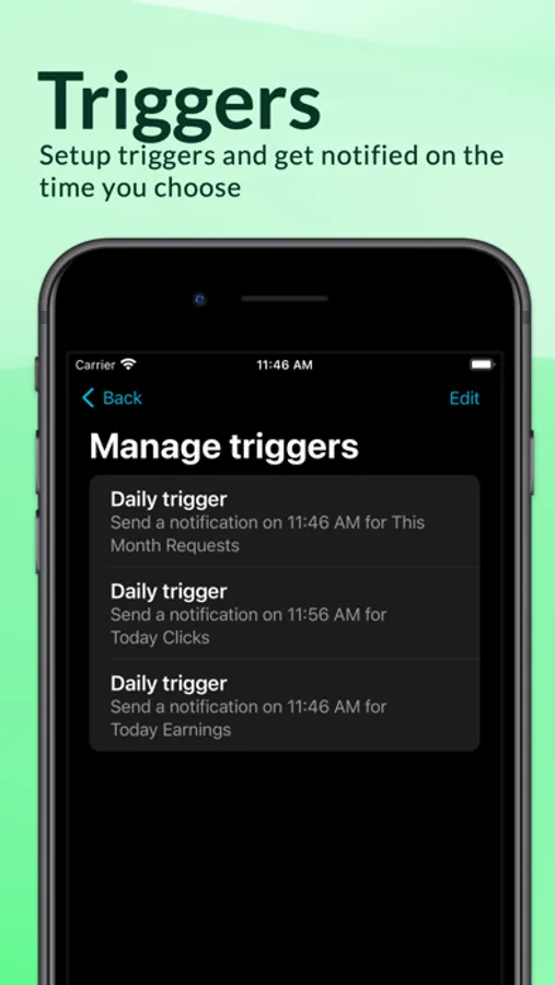 - Create/Manage daily triggers and notifications for your reports (Revenue, Clicks, Imps etc ...).