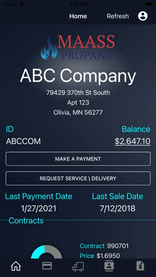 Information at your fingertips! This app gives you direct access to your account balance, location and contract information. It also gives you the ability to store and process payment and request service work and deliveries directly through the app.