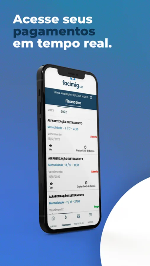 ▶ Acesso rápido e fácil aos dados financeiros, inclusive ver os boletos e código de barras de seus boletos.