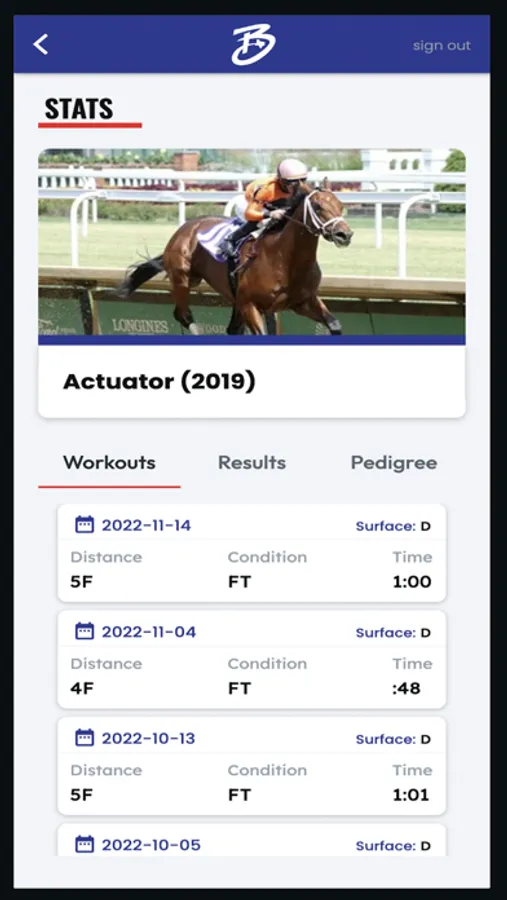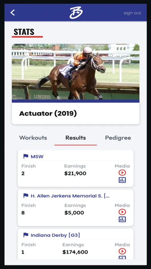 Horse racing app from Black Type Thoroughbred for horse investors and enthusiasts